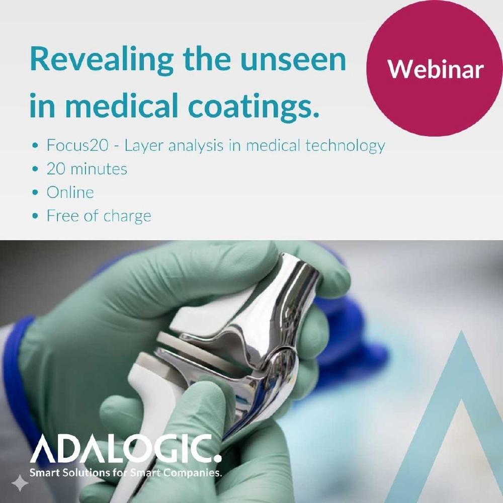 Im kostenlosen Webinar „Focus20“ steht die Schichtanalyse in der Medizintechnik im Fokus. Hochspezialisierte Software wie OptiMa der Adalogic GmbH ermöglicht die präzise Analyse von Materialstrukturen und Implantatbeschichtungen – von der
